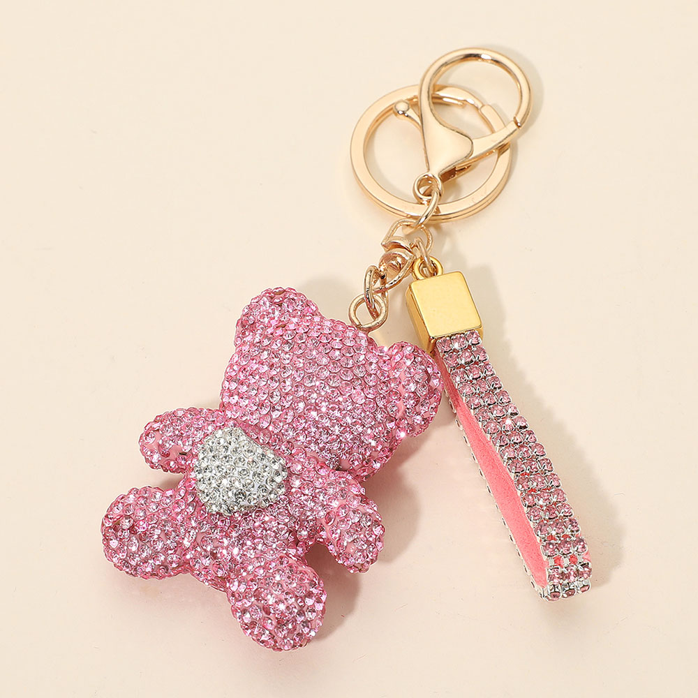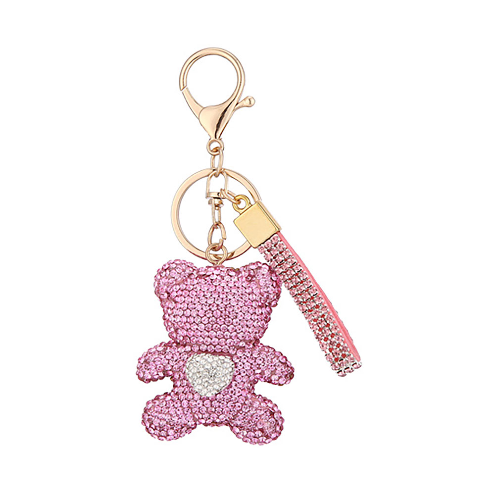 Details • Size : 5" L, 1.9" X 2.25" • Charming rhinestone bear keychain with matching wrist strap, featuring a sparkling heart accent for a playful touch. Perfect as a bag charm, accessory, or gift, adding shimmer and personality to keys, totes, and backpacks. • Lead and Nickel Compliant