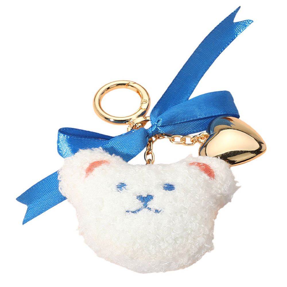 Details • Size : 4.75" L, 3.4" X 3.25" • Adorable plush bear keychain featuring a soft bear face, satin bow, and shiny heart charm. Perfect for decorating handbags, backpacks, or keys, this cute accessory adds a touch of charm and playfulness to your style while making a lovely small gift or collectible. • Lead and Nickel Compliant