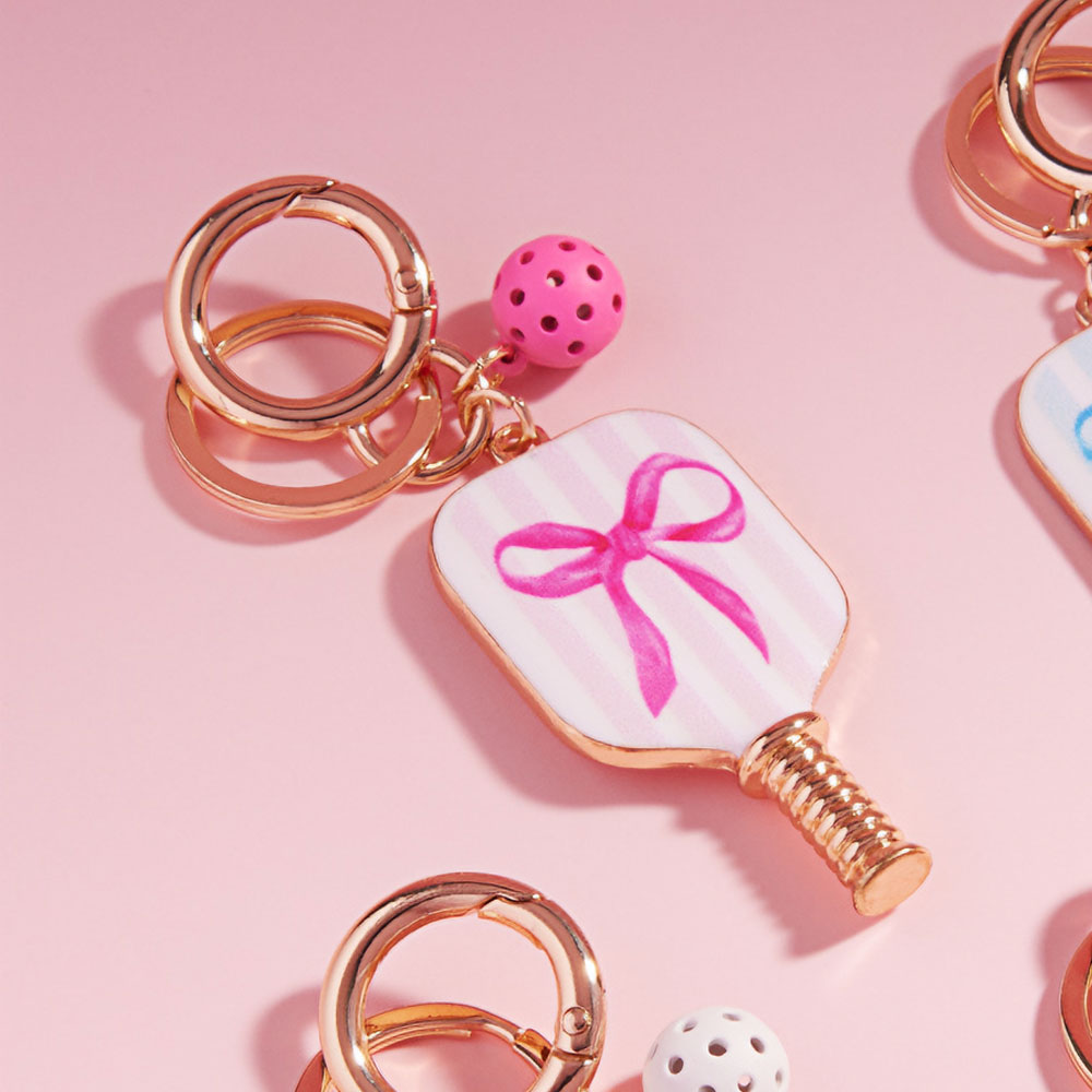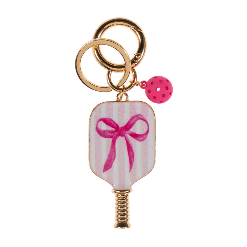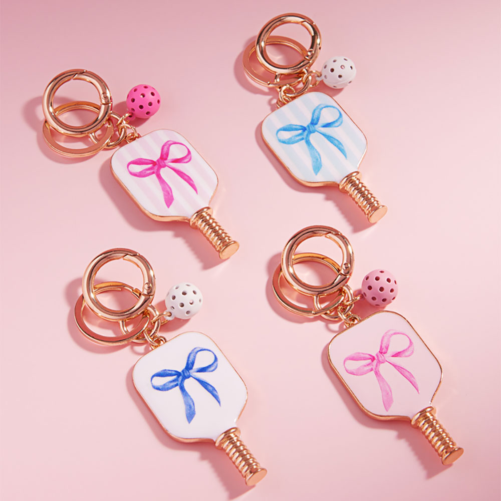 Enamel Bow Pointed Pickleball Paddle Keychain / Bag Charm