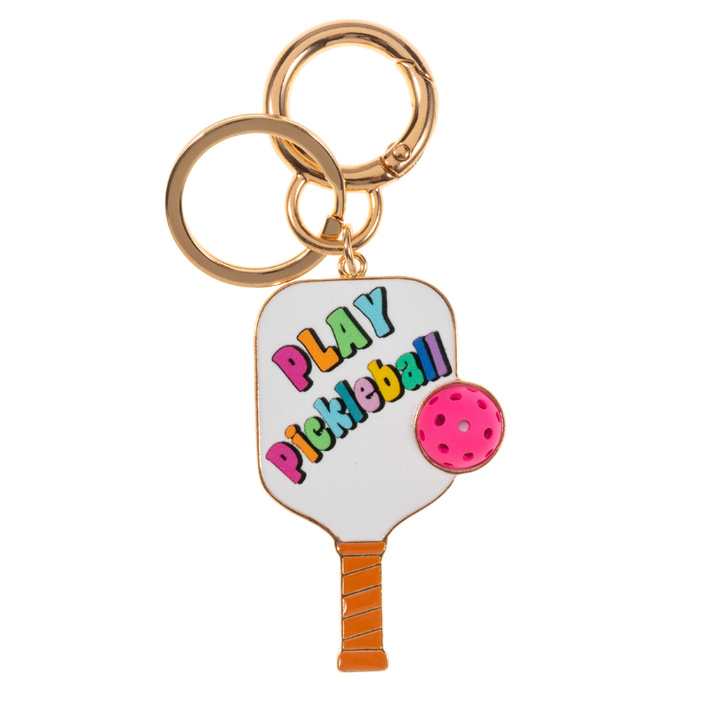 Enamel PLAY PICKLEBALL Message Pickleball Paddle Keychain
