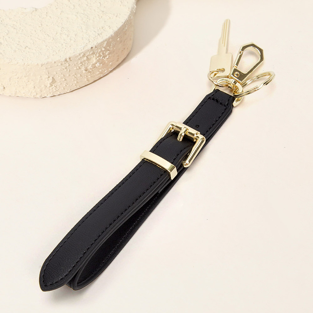 • Keep your essentials close with this adjustable wristlet keychain strap. Featuring a sleek belt-inspired design with a secure buckle and gold-tone accents, it offers both elegance and functionality—perfect for carrying keys or small accessories in effortless style.