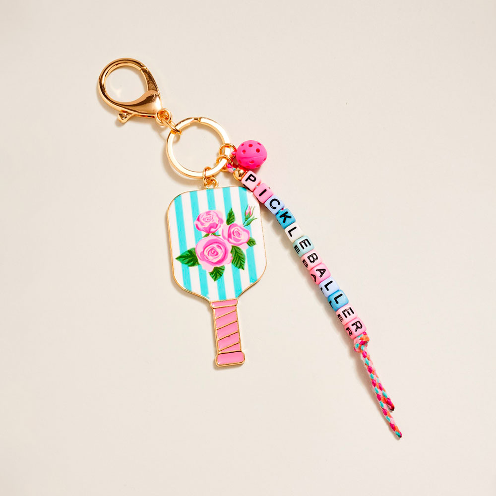 Floral Pickleball Paddle PICKLEBALLER Beaded Keychain Bag Charm