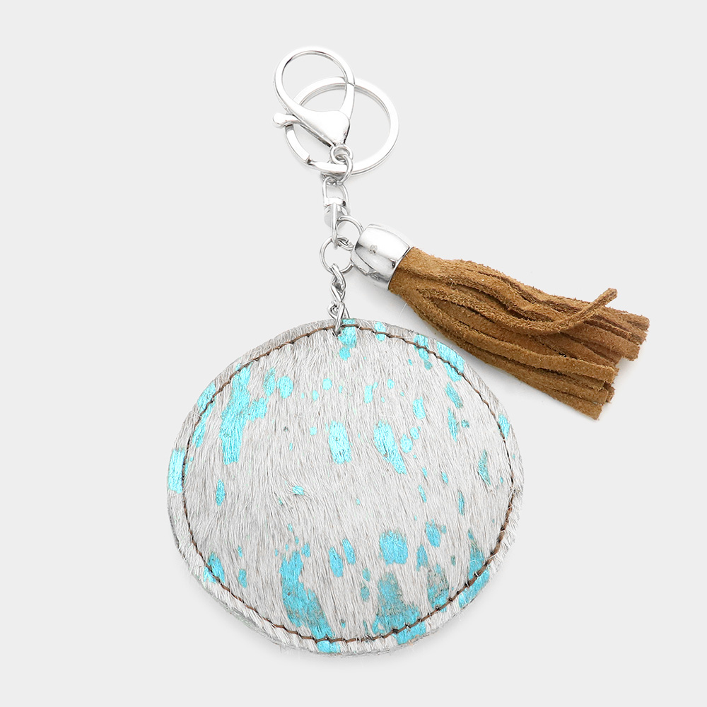 Leopard Patterned Genuine Fur Calf Round Tassel Keychain