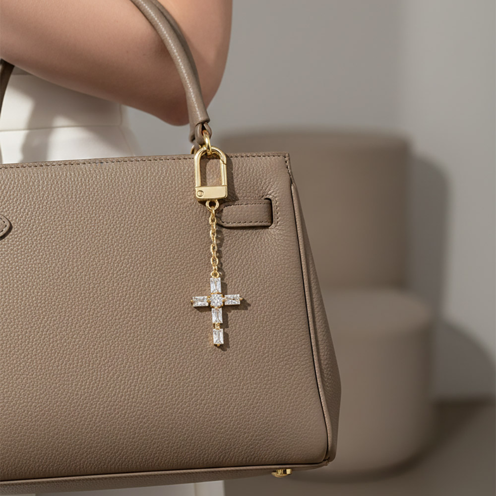 • Elegant cross bag charm designed with sparkling crystal accents for a refined, meaningful statement. Easily clips onto handbags, totes, backpacks, or keys to add style and personal expression. A versatile accessory ideal for gifting, faith-inspired collections, and boutique displays.