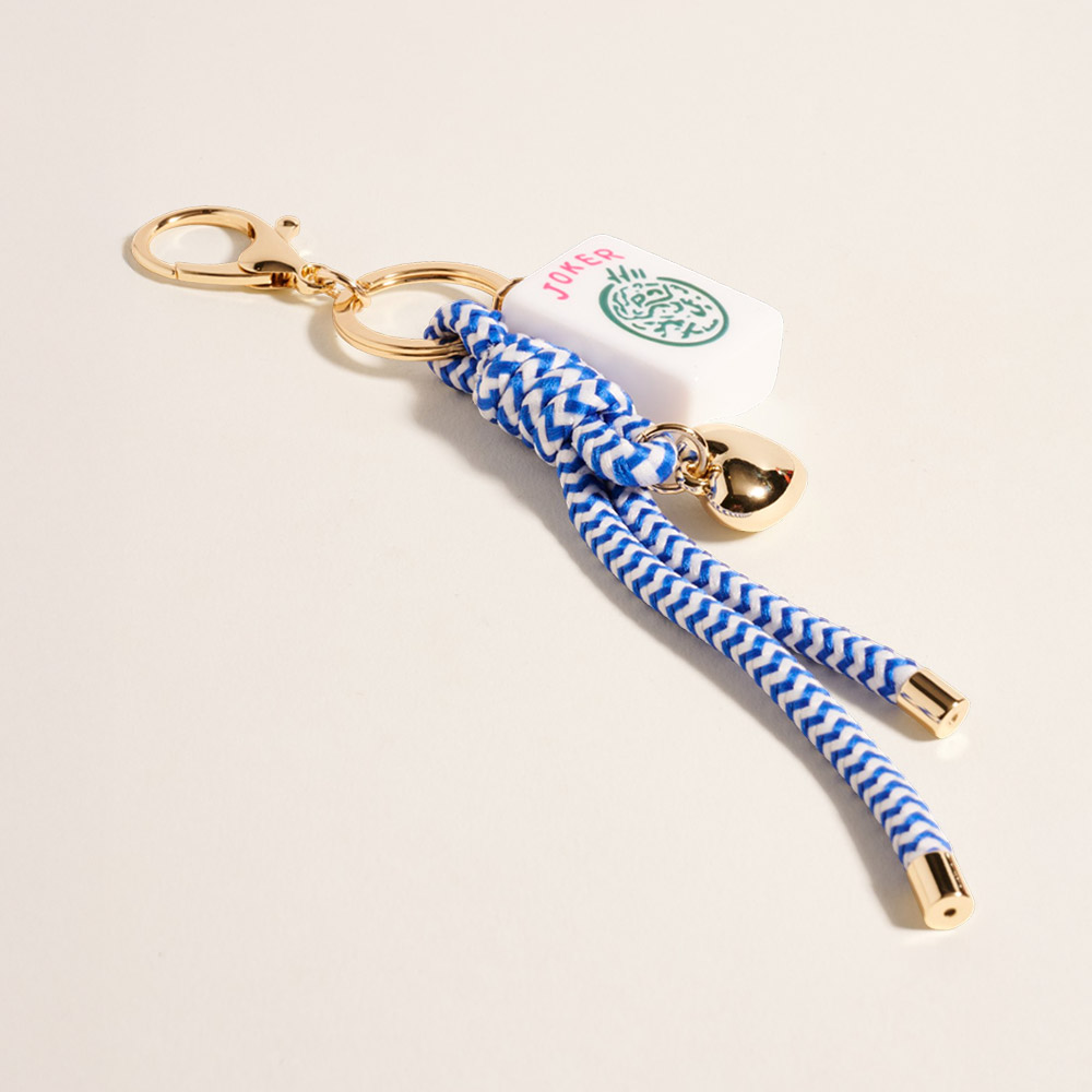Mahjong Tile Heart Charm Knot Strap Drop Keychain Bag Charm