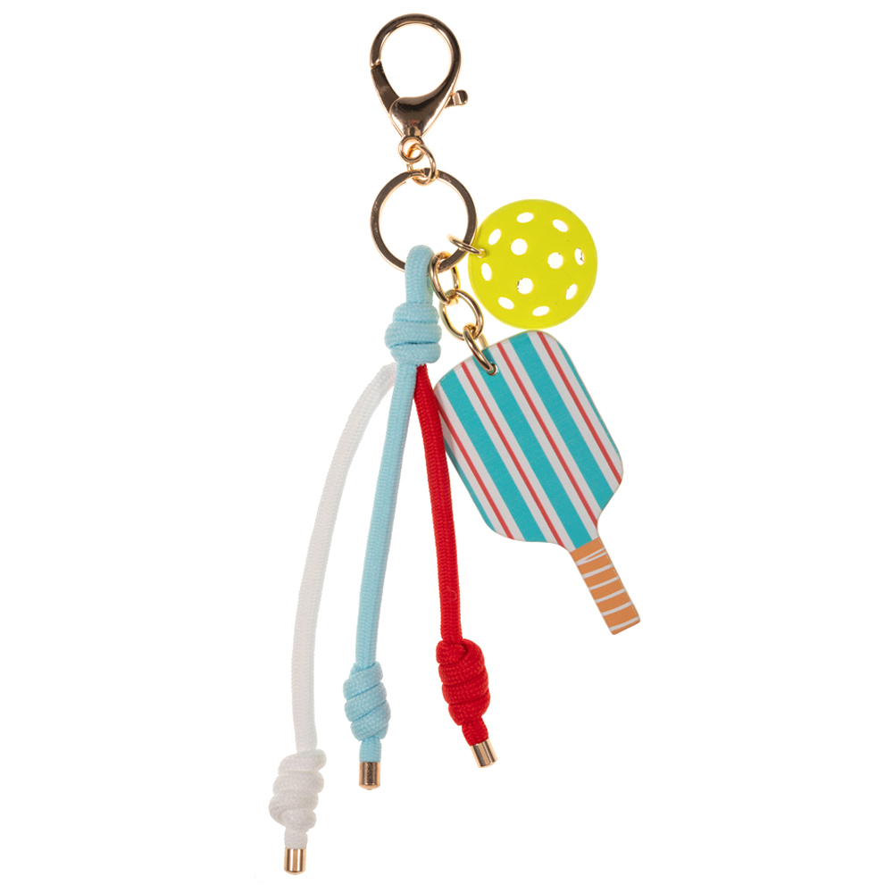 Pickleball Paddle Ball Charm Knotted Cord Drop Bag Charm Keychain