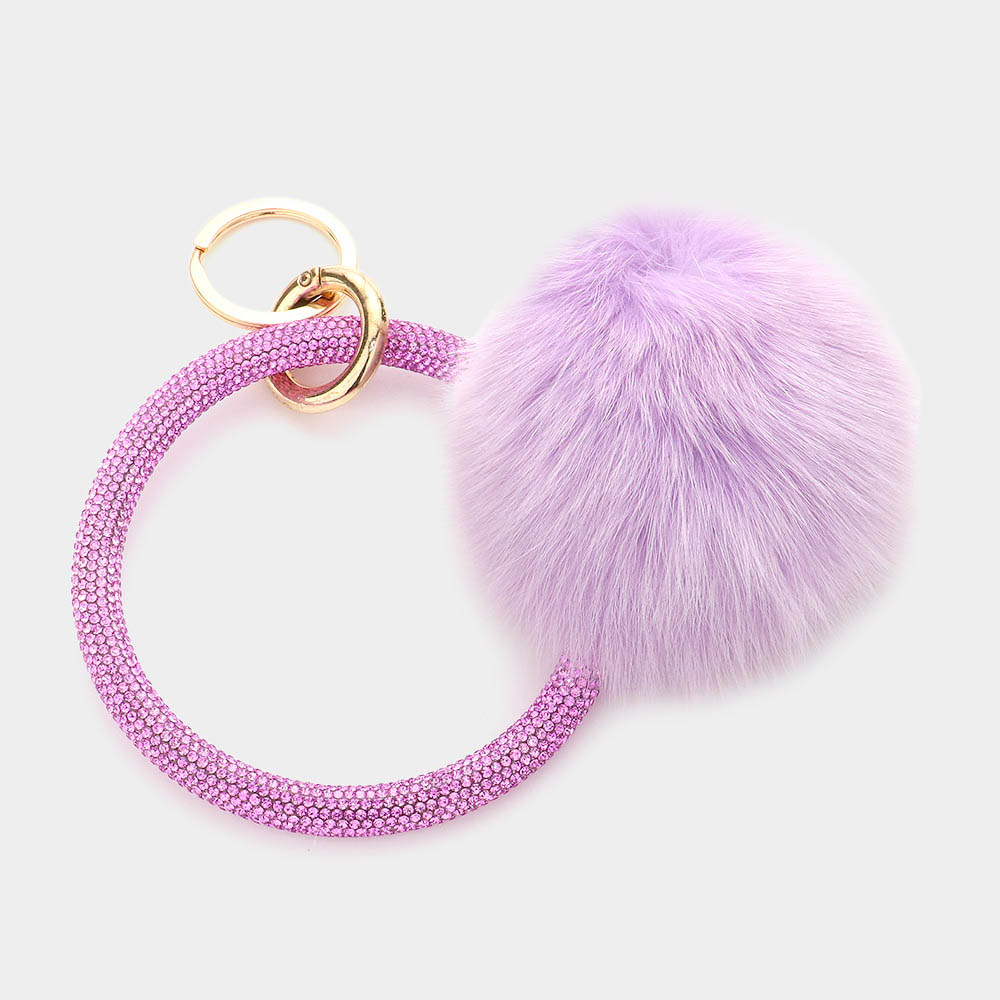 Pom Pom Rhinestone Pave Bangle Keychain / Bracelet