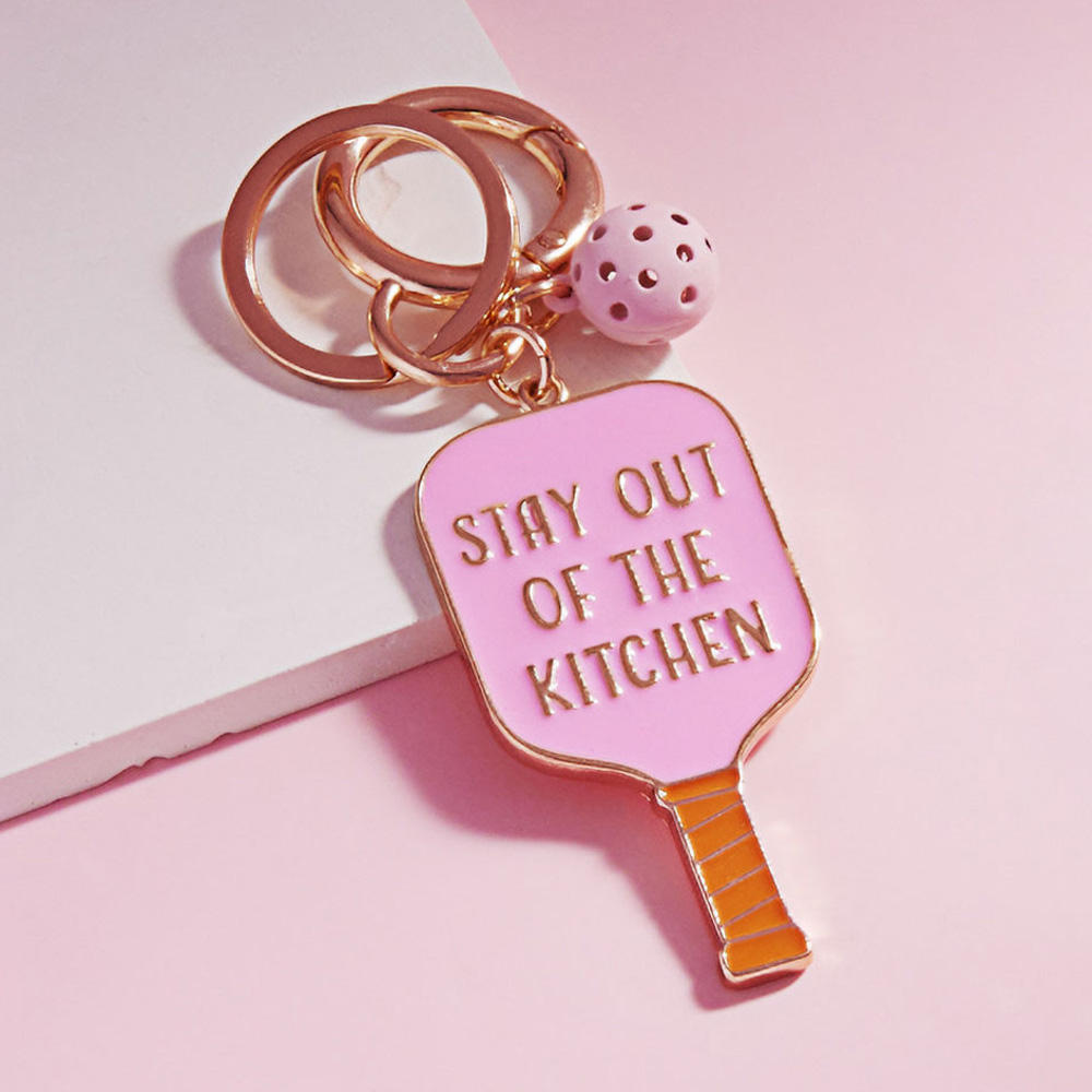 STAY OUT OF THE KITCHEN Message Enamel Pickleball Paddle Keychain / Bag Charm