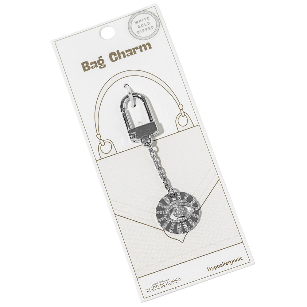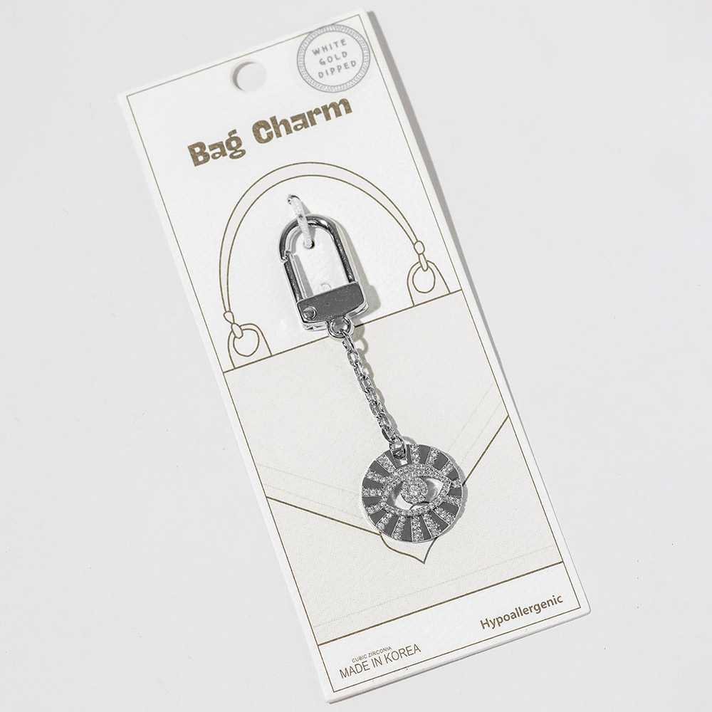 White Gold Dipped CZ Pave Evil Eye Drop Keychain Bag Charm