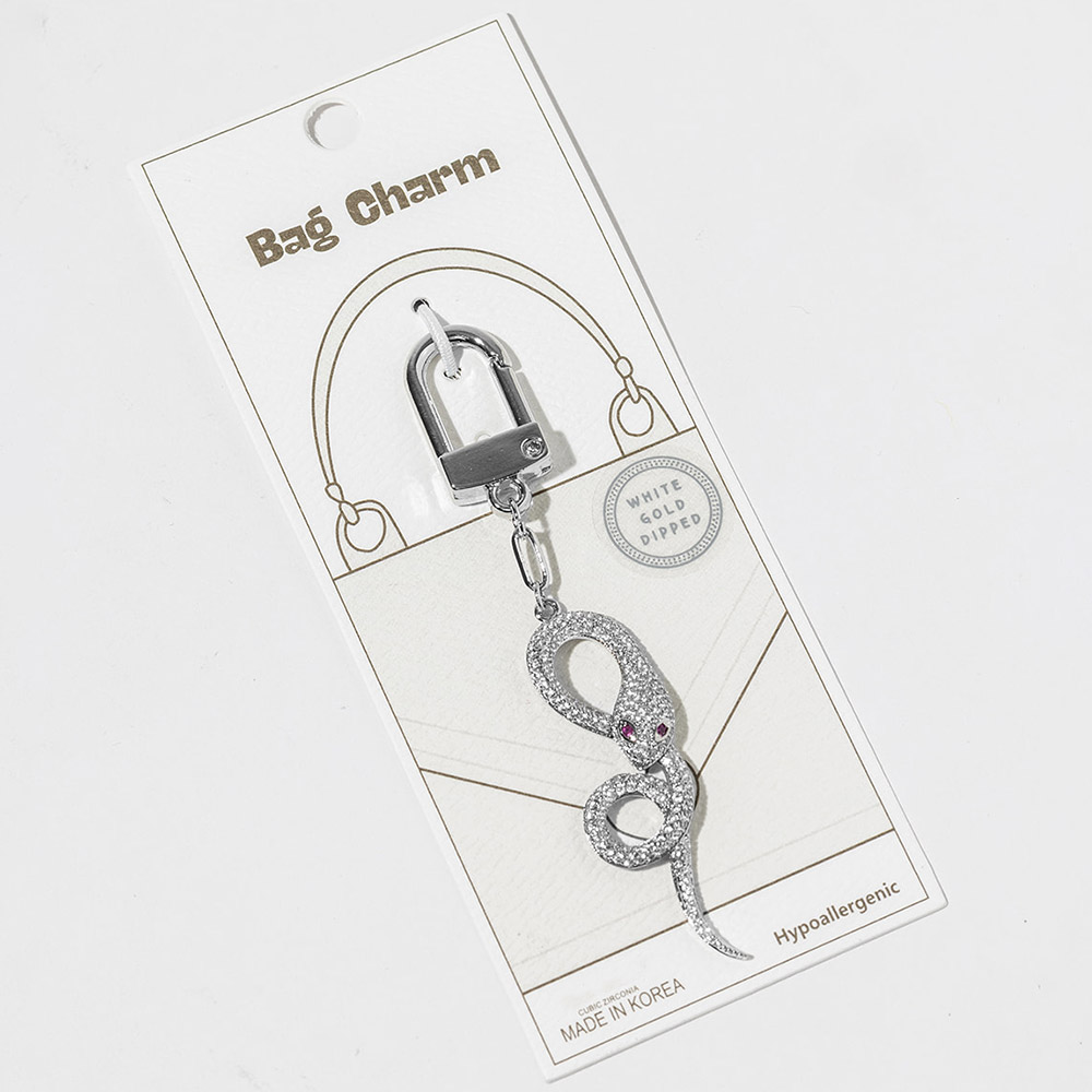 White Gold Dipped CZ Pave Snake Drop Keychain Bag Charm White Gold Dipped CZ Pave Snake Drop Keychain Bag Charm White Gold Dipped CZ Pave Snake Drop Keychain Bag Charm White Gold Dipped CZ Pave Snake Drop Keychain Bag Charm