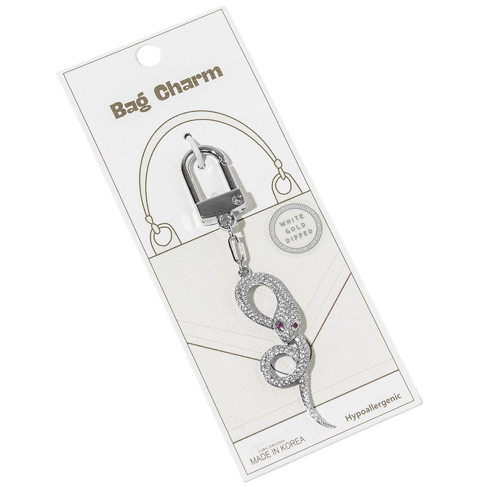 White Gold Dipped CZ Pave Snake Drop Keychain Bag Charm