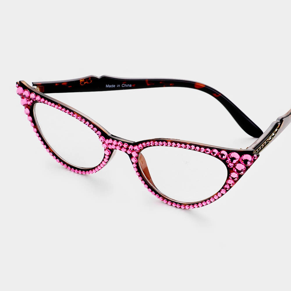 • Bold cat-eye glasses adorned with shimmering rhinestones for a glamorous statement look. Perfect for parties, costumes, themed events, or adding sparkle to everyday style, these frames bring vintage flair with a modern twist.