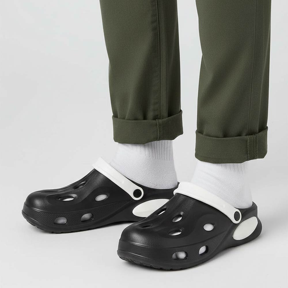 • Everyday clog style footwear featuring a breathable perforated design, cushioned footbed, and flexible heel strap for wear as a slide or secure fit. Lightweight and easy to style for casual days and travel.