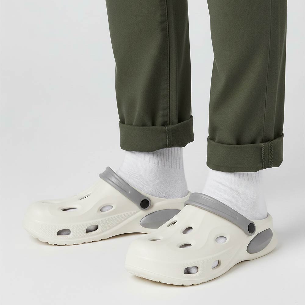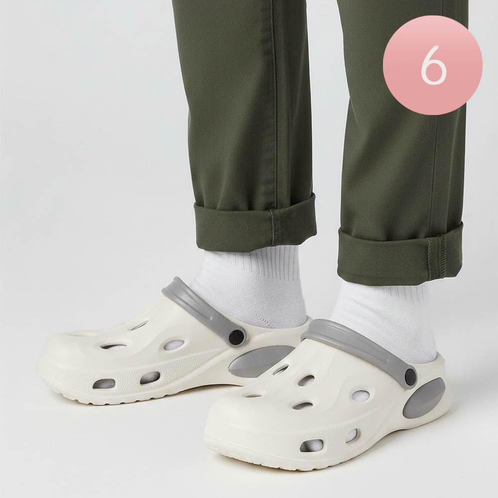Details • Size : 6 Pairs Assorted size in each pack • 2 Small, 2 Medium, 2 Large • S Size : US 7 ~ 8 (37-38) • M Size : US 9 ~ 10 (39-40) • L Size : US 11 ~ 12 (44-42) • Material : 100% EVA • Everyday clog style footwear featuring a breathable perforated design, cushioned footbed, and flexible heel strap for wear as a slide or secure fit. Lightweight and easy to style for casual days and travel.