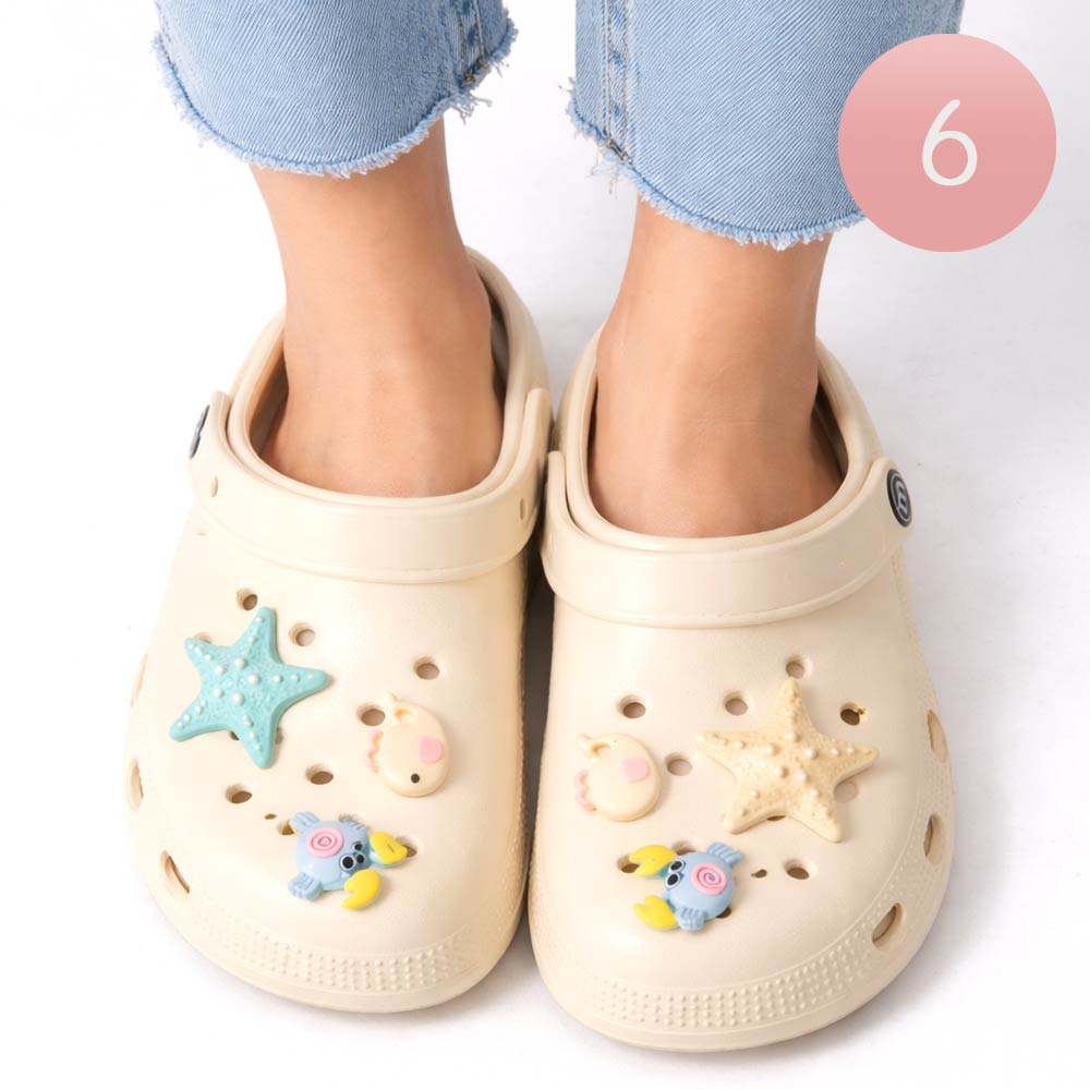 • Playful clog style footwear designed with fun decorative charms, breathable perforations, and a cushioned footbed for everyday comfort. Features a pivot heel strap for secure wear or easy slip-on styling, ideal for casual outings, travel, and relaxed daily looks.