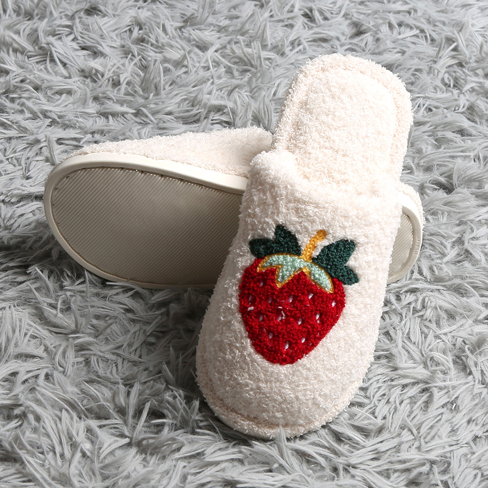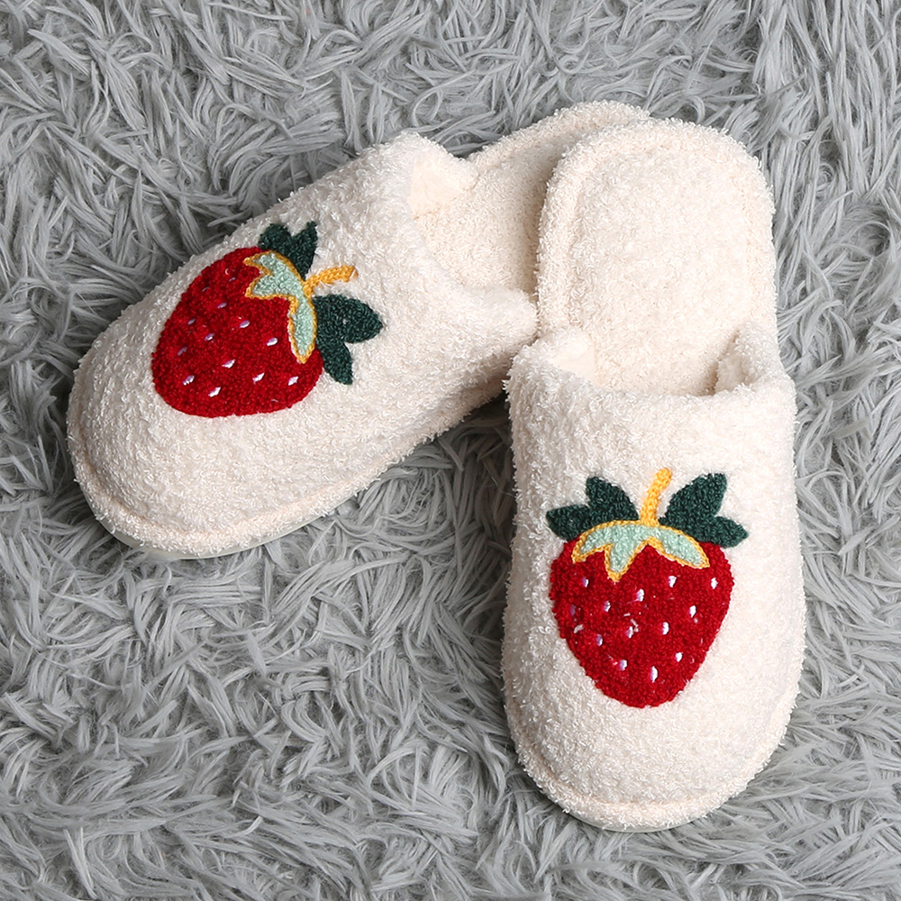 Details • Size : M/L (Women 8-10, Men 7-9) • Material : 100% Poly. Microfiber • Stay warm and stylish at home with these cozy indoor slippers featuring a bright strawberry embroidery. Perfect for everyday comfort, they provide softness, warmth, and a fun playful accent, making them an ideal gift or personal lounging essential.
