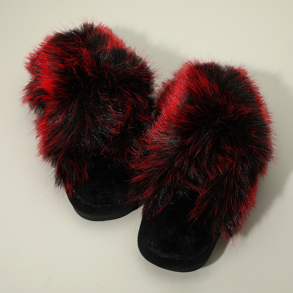 Fluffy Faux Fox Fur Indoor Floor Slippers