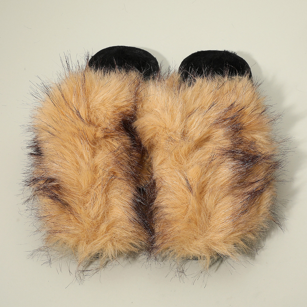 Fluffy Faux Raccoon Fur Indoor Floor Slippers