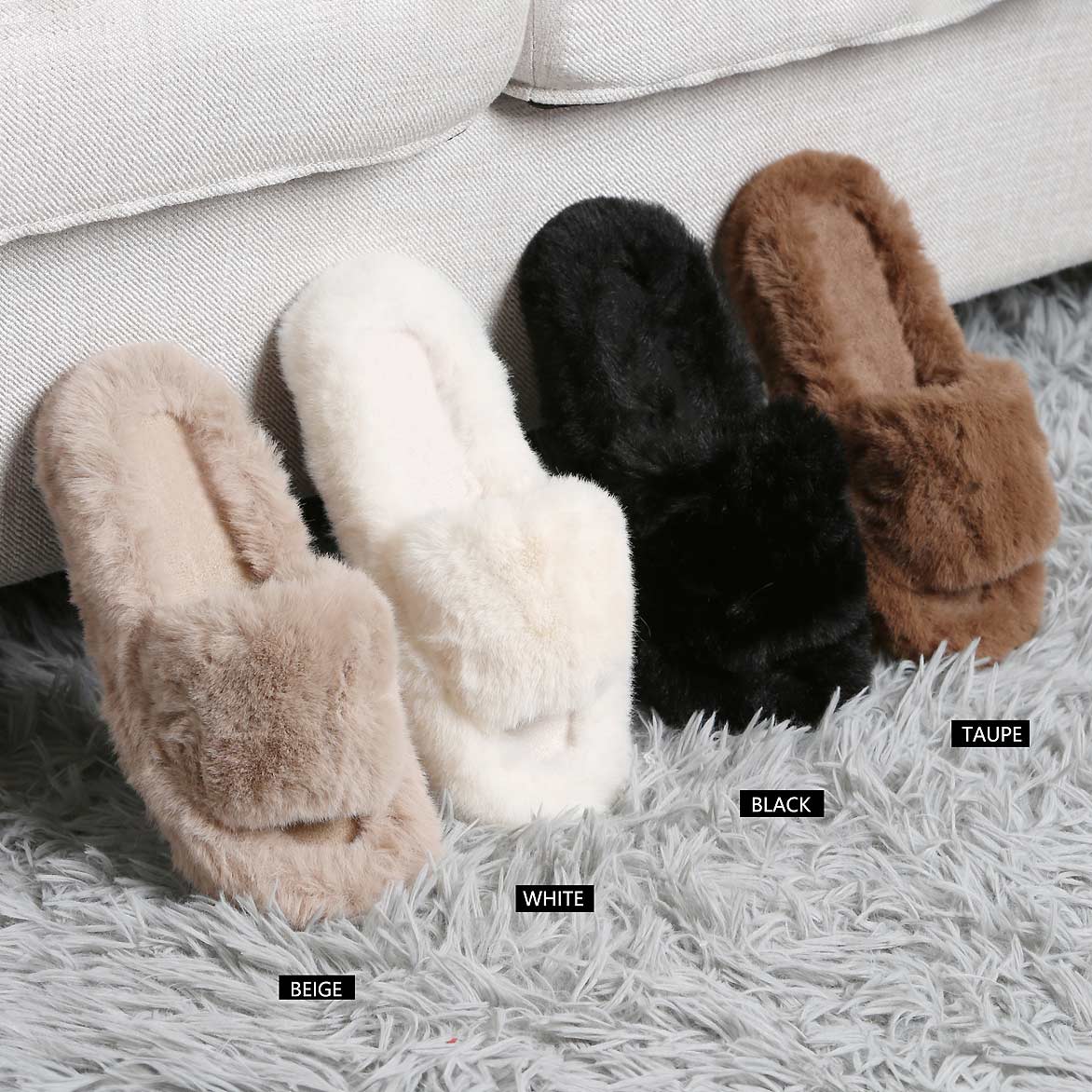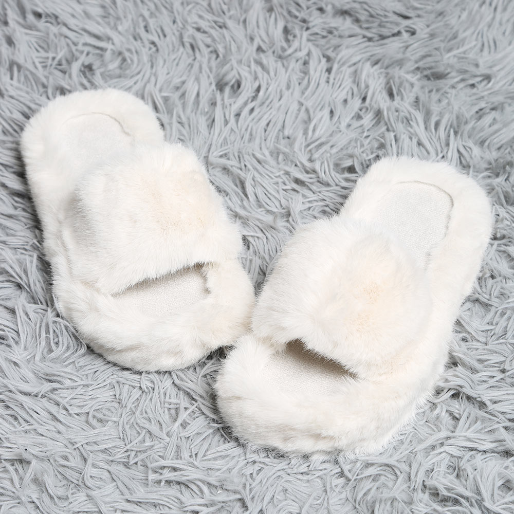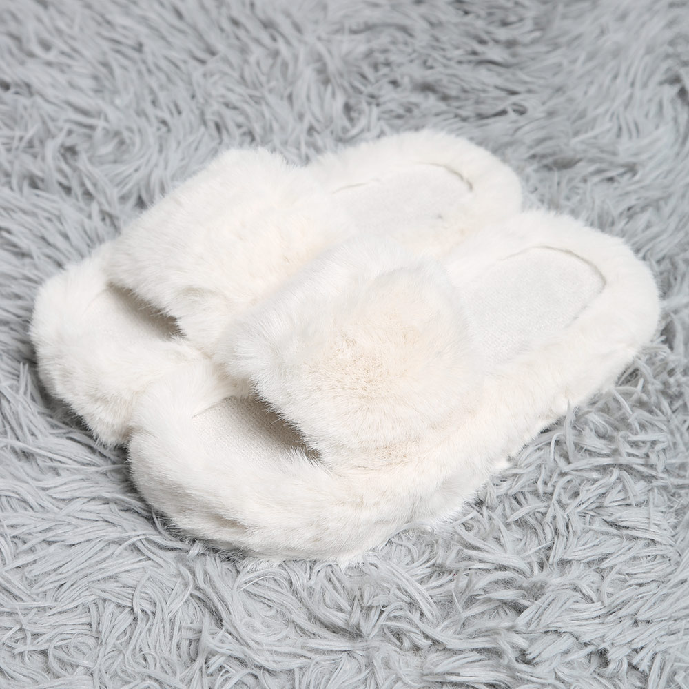 Fuzzy Solid Color Open Toe Indoor Floor Slippers