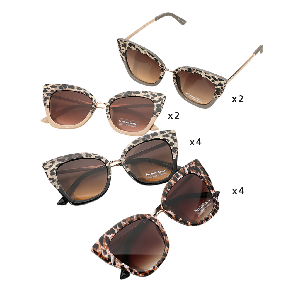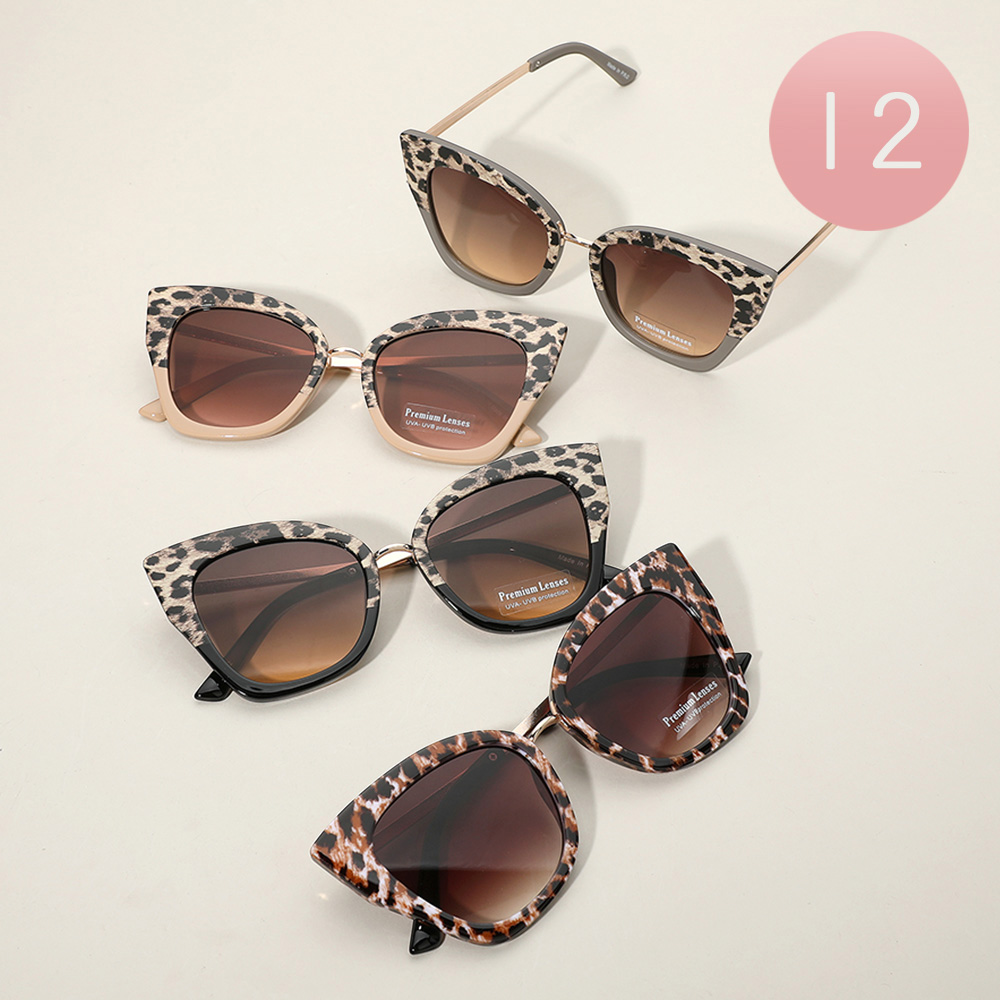 12Pairs - Leopard Printed Cat Eye Frame Sunglasses