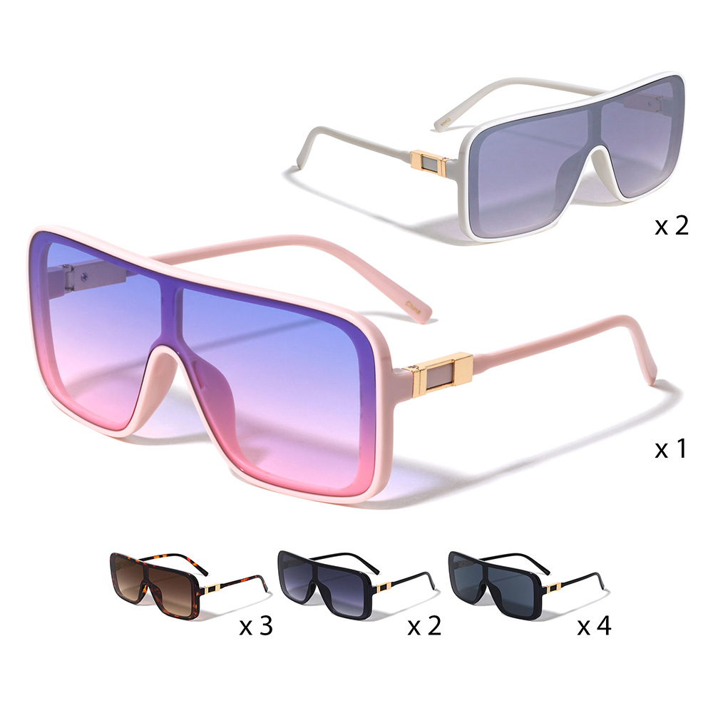 12Pairs - Oversized Flat Top Gradient Shield Sunglasses