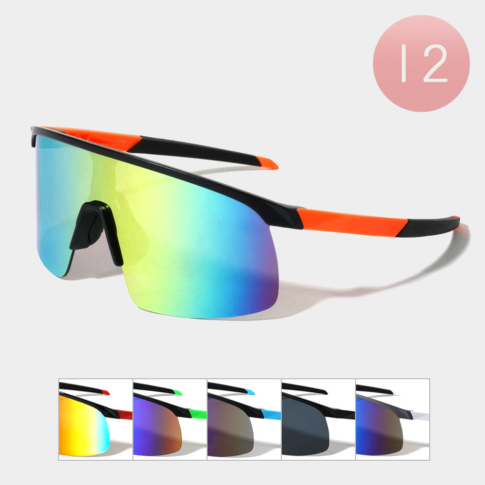 12PCS - Rimless Color Mirrored Lens Shield Sport Sunglasses