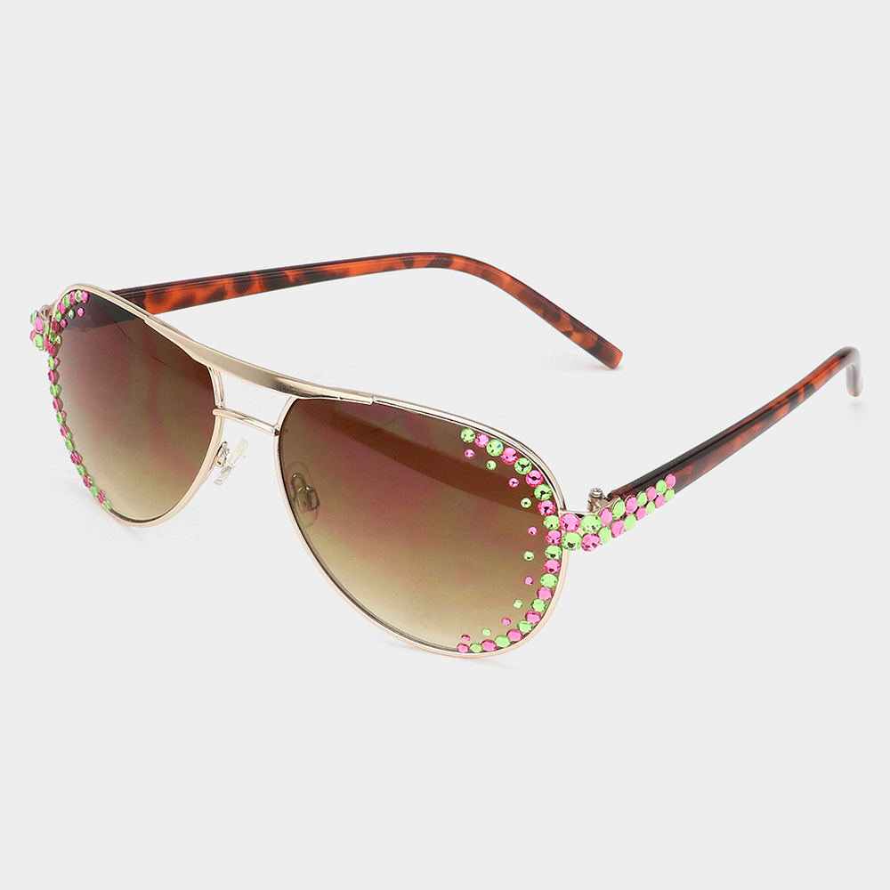 Crystal Bling Studded Tinted Lens Aviator Sunglasses