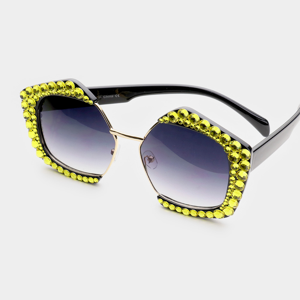 Crystal Embellished Detail Pentagon Sunglasses