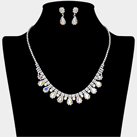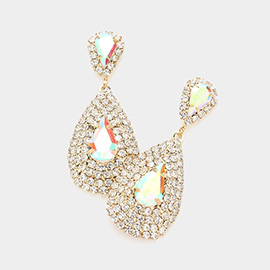 Teardrop Glass Stone Pointed Rhinestone Paved Evening Earrings