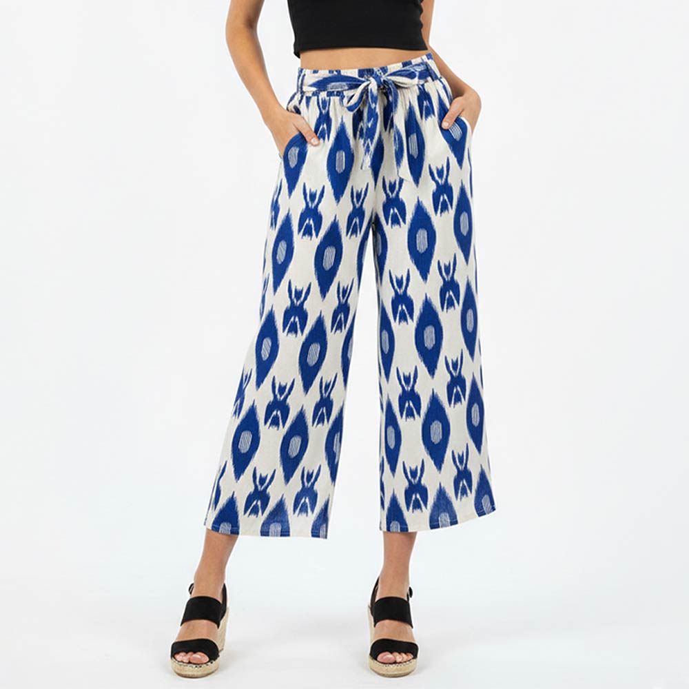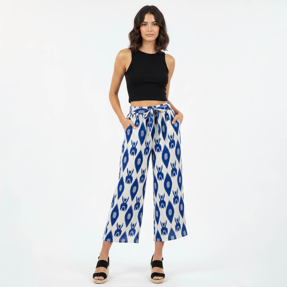 • Statement ikat pattern wide leg pants featuring a relaxed fit and easy elastic waistband for everyday comfort. Designed for effortless styling, these pull-on pants offer fluid movement and a flattering silhouette. Ideal for casual wear, travel looks, or boutique collections, they pair seamlessly with simple tops and layered outfits for versatile, seasonless appeal.