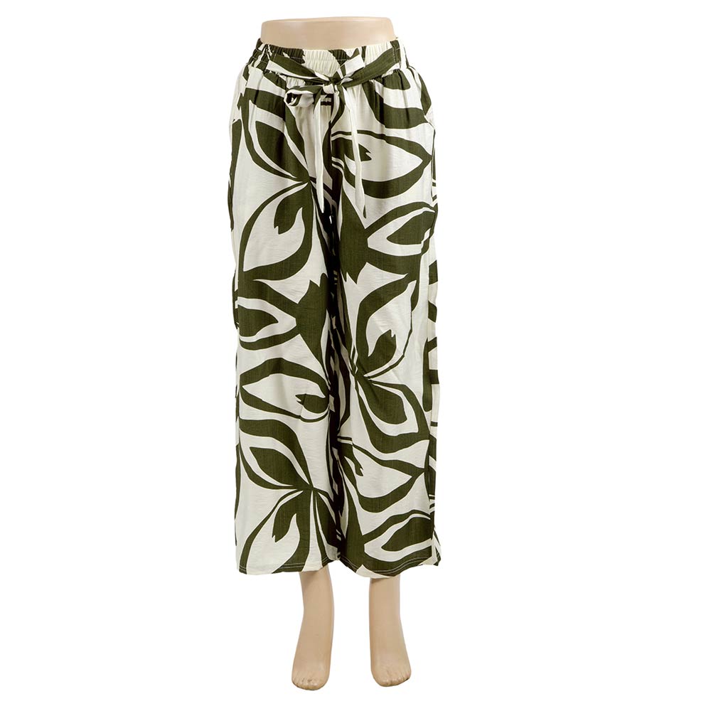 • Stylish wide leg pants featuring a bold allover print, elastic waistband, and adjustable tie detail for a comfortable fit. Designed for easy everyday styling, travel, lounging, or boutique collections. A versatile statement bottom that pairs effortlessly with casual tops, sandals, or layered looks for year-round wear.