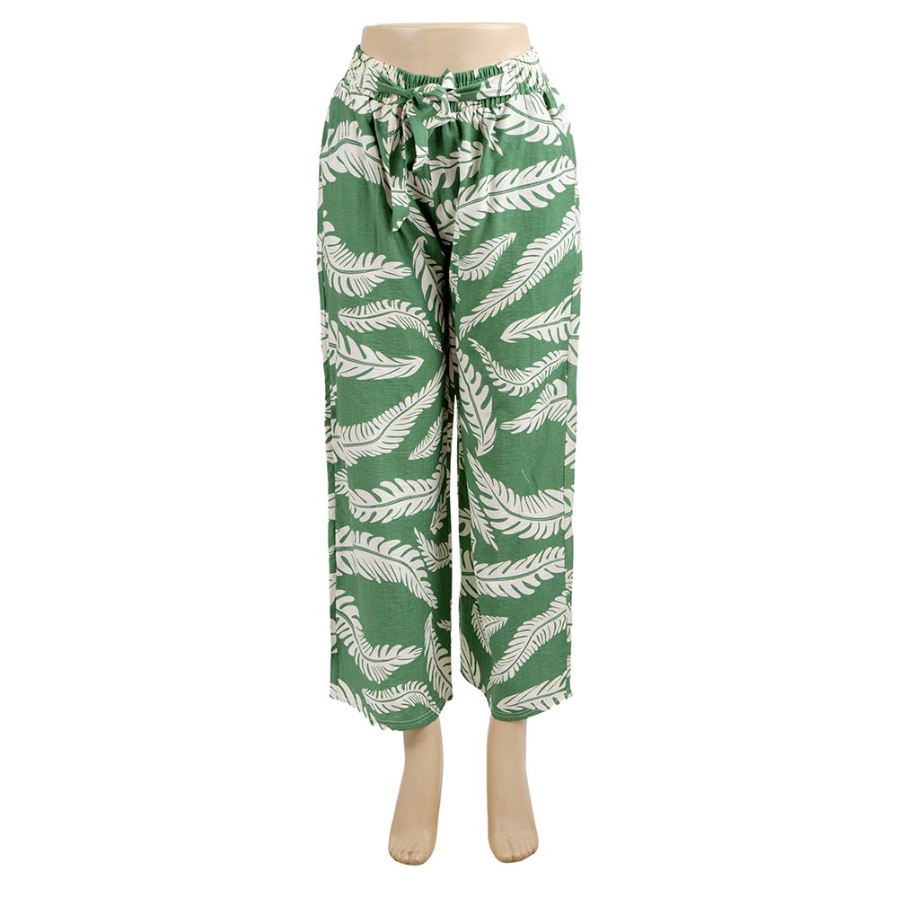 • Relaxed wide leg pants featuring an allover leaf-inspired print and a comfortable elastic waistband. Designed for easy pull-on wear, these flowy pants offer a flattering drape and effortless movement. Ideal for casual styling, travel outfits, or boutique assortments, they pair perfectly with simple tops and layered looks for versatile, everyday appeal.