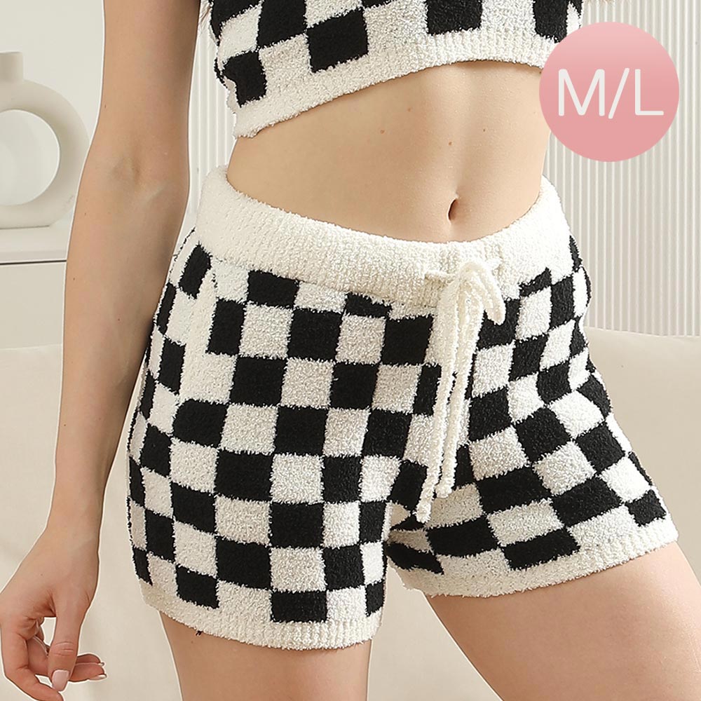 • Cozy checkerboard knit lounge shorts featuring a soft textured design with elastic waistband and adjustable drawstring for a perfect fit. Designed with side pockets and a relaxed silhouette, these stylish shorts offer comfort and versatility, ideal for casual wear, loungewear, or layering sets.