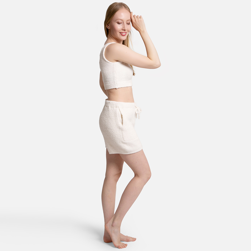 • Stay comfy and cheerful in these cozy knit lounge shorts featuring a playful smiley face accent and front pockets. Designed with a relaxed fit and adjustable drawstring for all-day comfort and style.