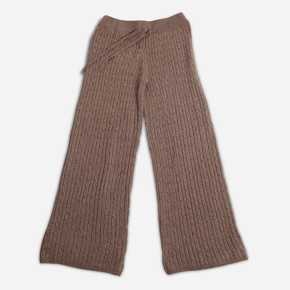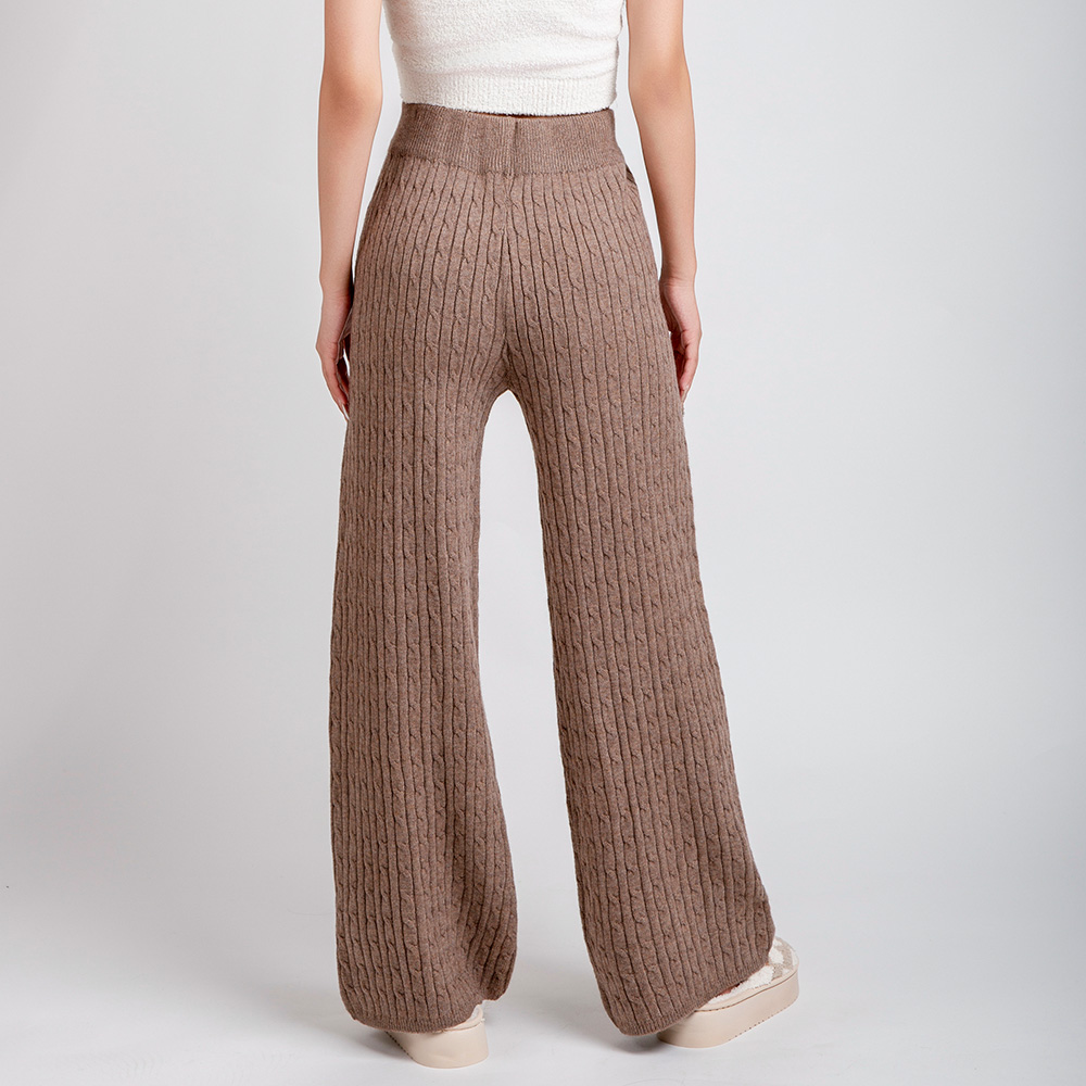 Details • Size : One Size • Material : 65% Polyester, 35% Acrylic • Features : Adjustable drawstring and elastic waistband • Care : Machine wash on the cole and gentle cycle, do not bleach, lay flat to dry or tumble dry on low, iron or steam on low, do not dry clean • Cozy cable knit lounge pants designed with a relaxed wide-leg silhouette and adjustable drawstring waist for a custom fit. Crafted for ultimate comfort, these soft knit pants are perfect for casual days, lounging at home, travel, or effortless everyday style. Pair them with sweaters, crop tops, or loungewear sets for a chic and cozy look you'll love to wear all season long.