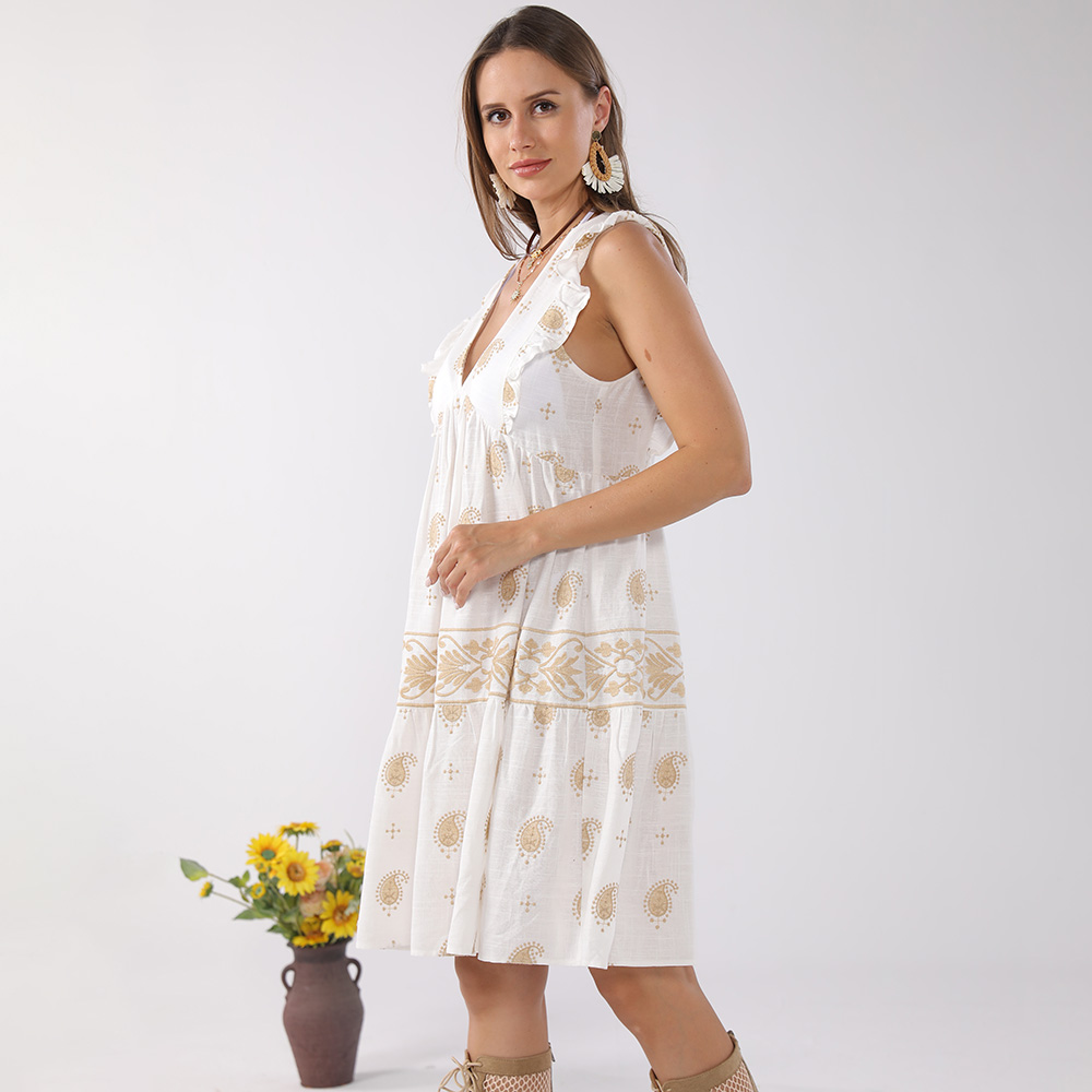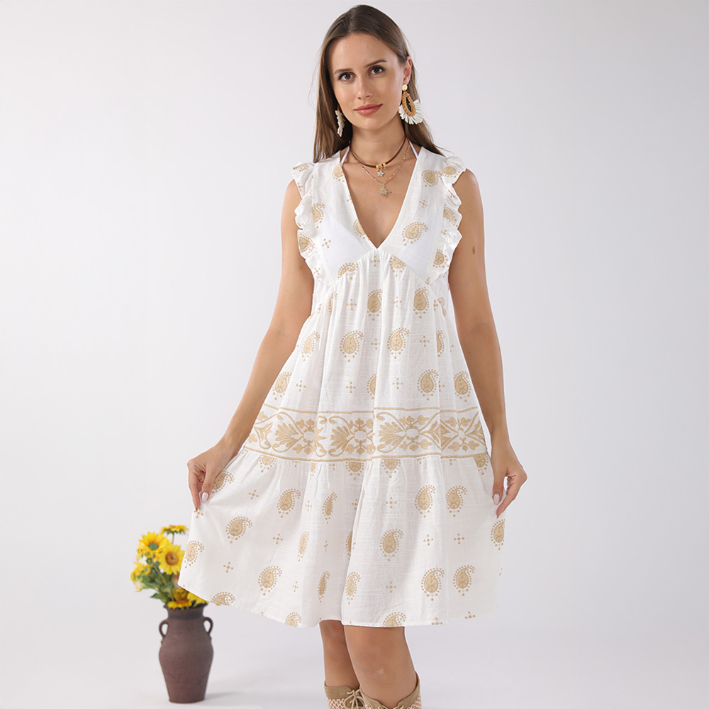 Boho Sleeveless Flowy V-Neck Summer Tunic Dress