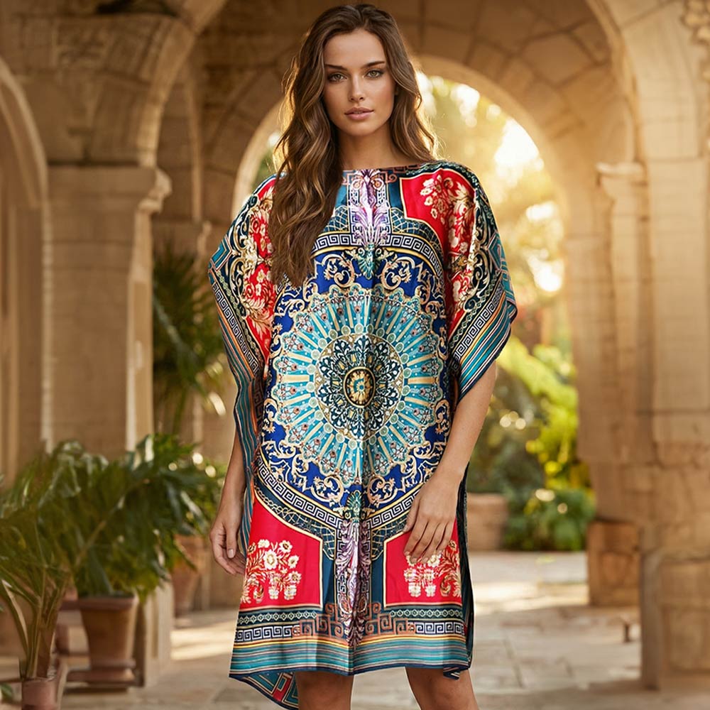 Medallion Print Resort Silky Kaftan Midi Dress
