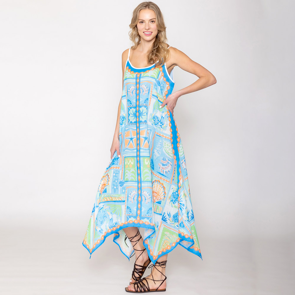 Sea Life Printed Flowy Long Dress