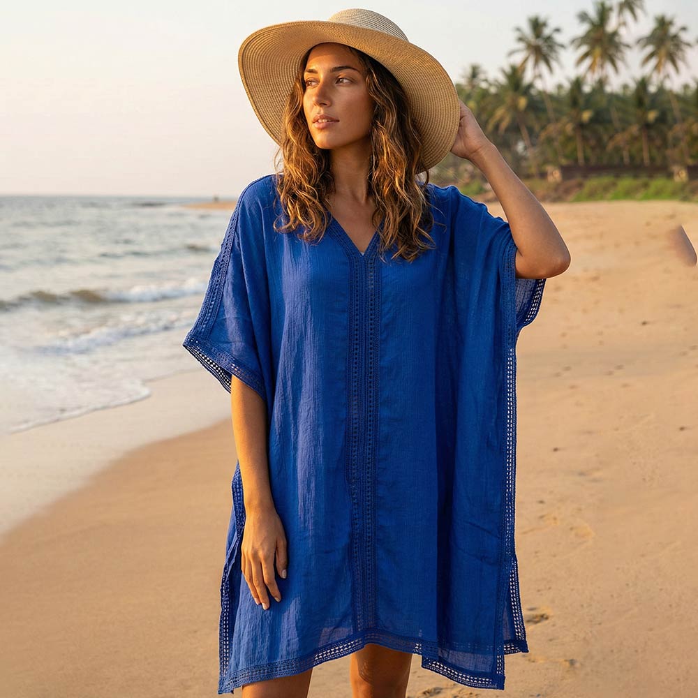 • This V-neck relaxed fit beach cover-up dress is designed for effortless vacation styling and everyday resort wear. Featuring a loose silhouette with airy sleeves and a comfortable drape, it’s ideal for layering over swimwear, strolling the beach, or enjoying warm-weather outings with easy elegance.