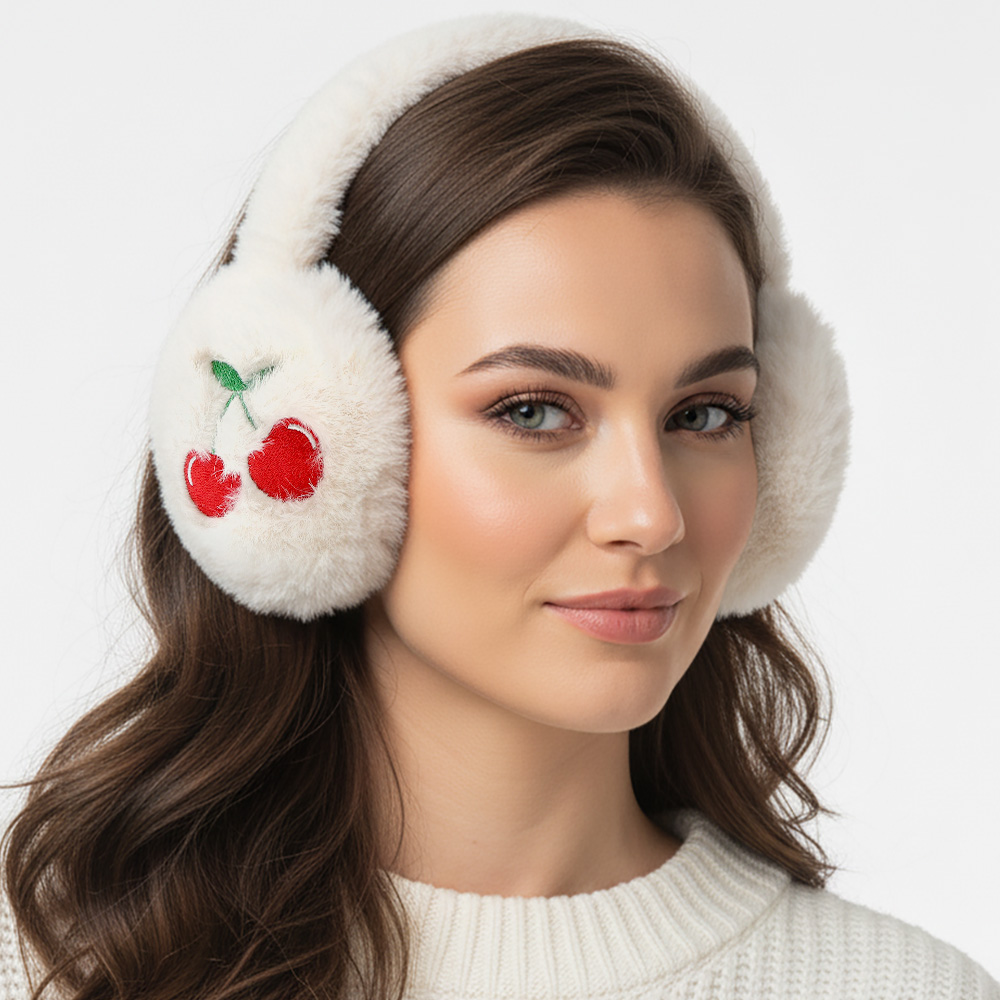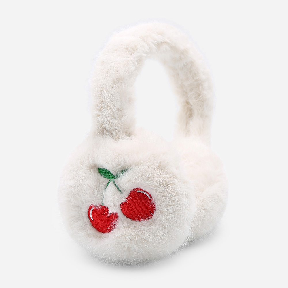 Faux Fur Plush Cherry Embroidered Earmuffs