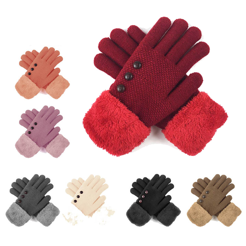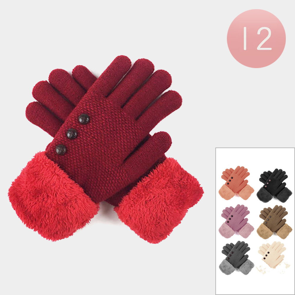 12Pairs - Faux Fur Lining Gloves with Buttons