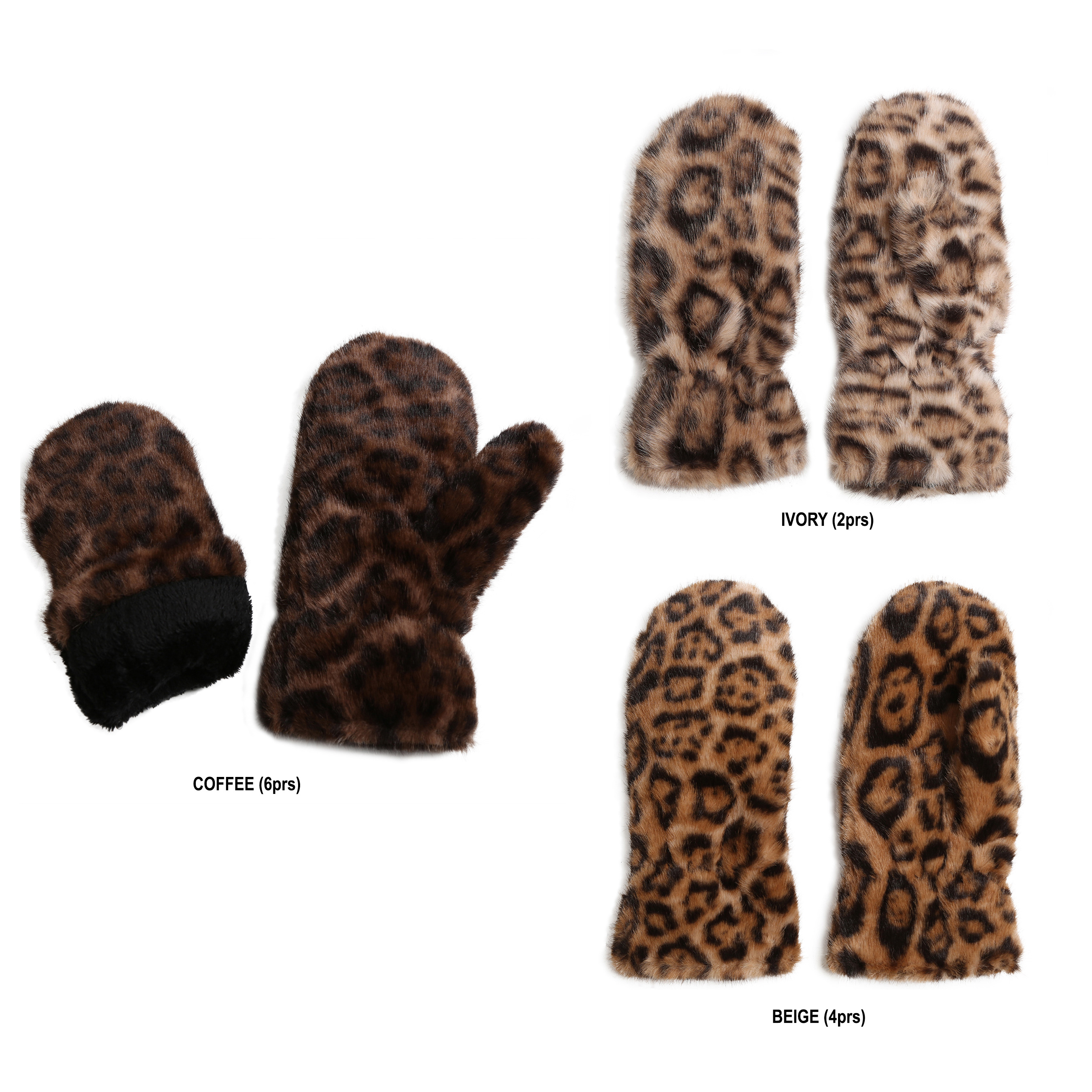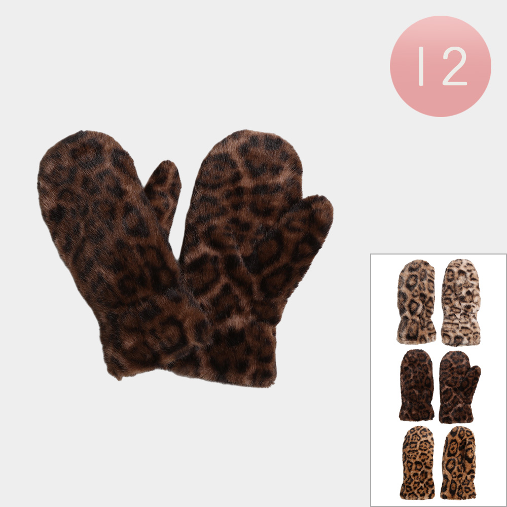 • Stay stylish and cozy with faux fur animal print mittens. Pack of 12 pairs in assorted bold prints, ideal for winter fashion, gifting, and resale.