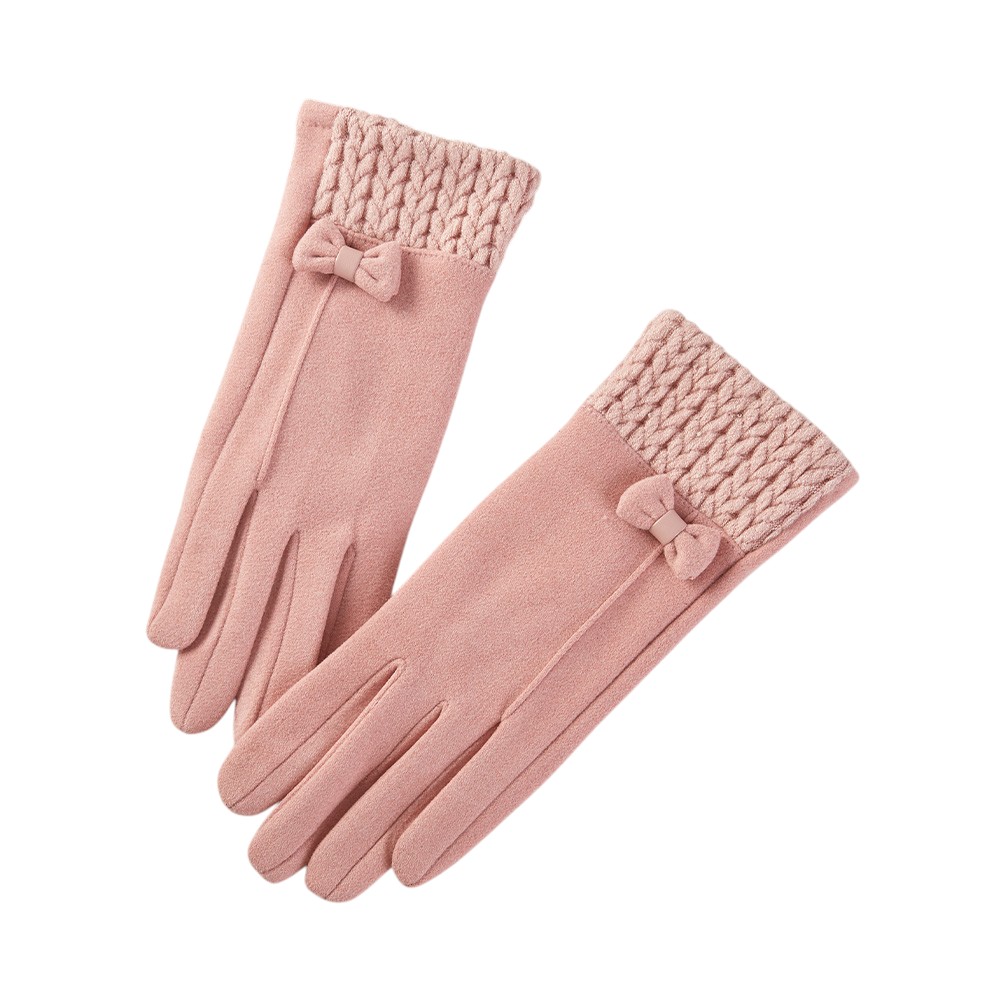• Cozy winter gloves featuring a textured knitted cuff and delicate bow accent for added charm. Soft and comfortable, these stylish gloves provide warmth while adding a feminine touch, perfect for casual wear or complementing dressy cold-weather outfits.