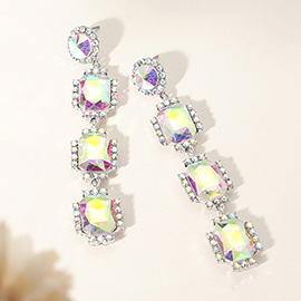 Round Stone Link Dangle Evening Earrings