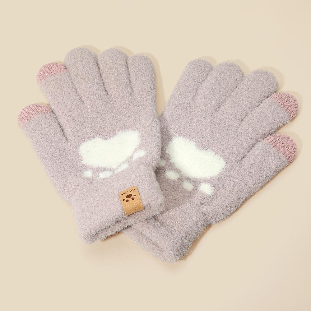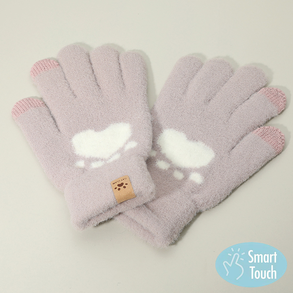 Details • Size : One Size • Material : 100% Polyester • Smart Touch • Stay warm and stylish with cat paw smart touch gloves featuring an adorable heart and paw print design. Made for comfort and functionality, these cozy gloves allow you to use your smartphone while keeping hands warm, making them perfect winter accessories for cat lovers and gift giving.