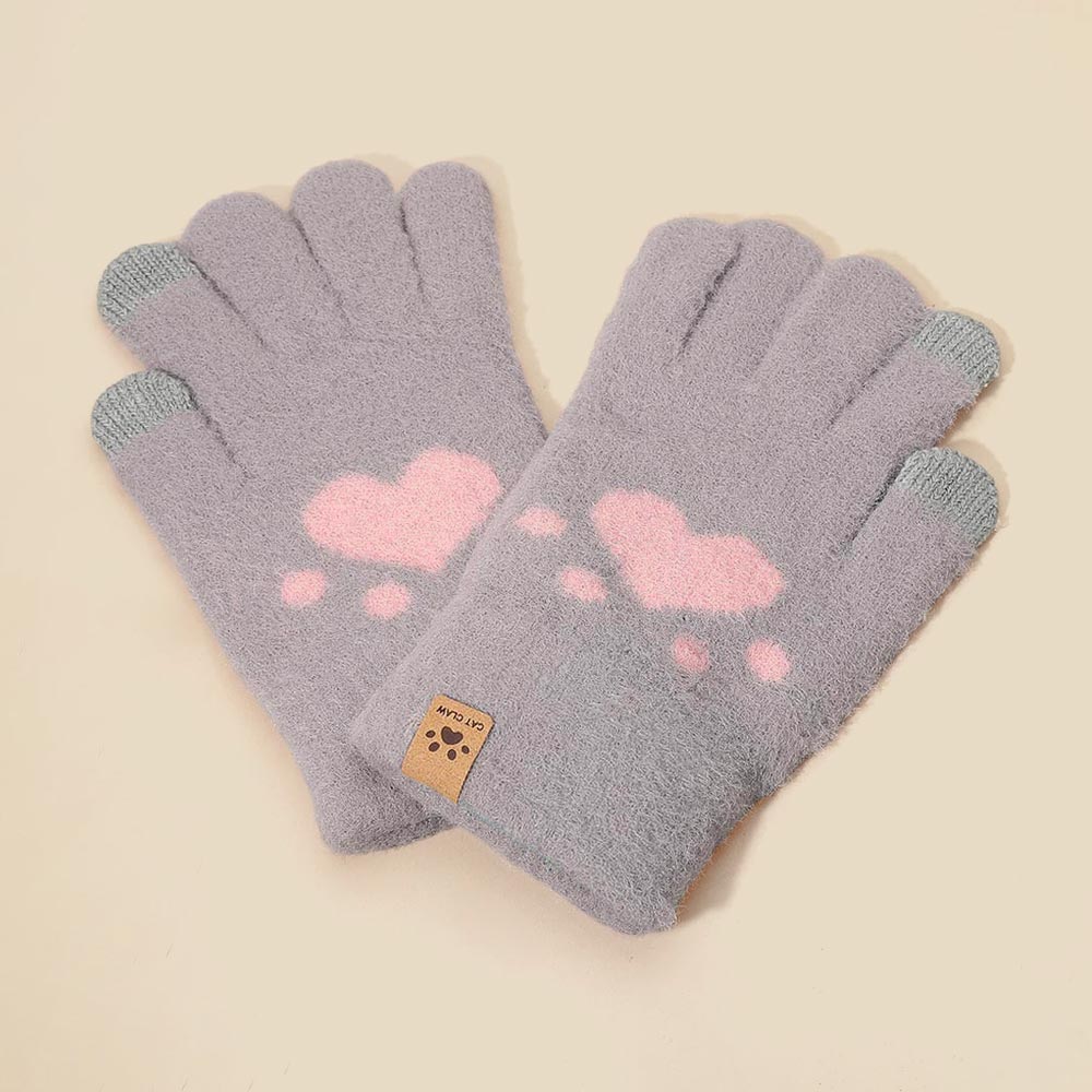 Details • Size : One Size • Material : 100% Polyester • Smart Touch • Stay warm and stylish with cat paw smart touch gloves featuring an adorable heart and paw print design. Made for comfort and functionality, these cozy gloves allow you to use your smartphone while keeping hands warm, making them perfect winter accessories for cat lovers and gift giving.
