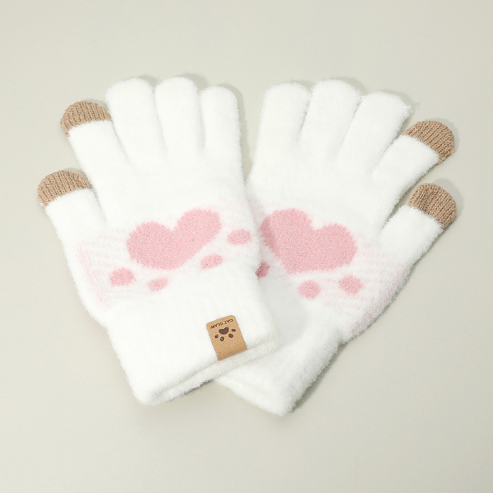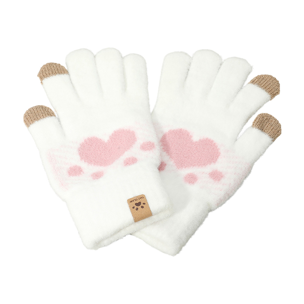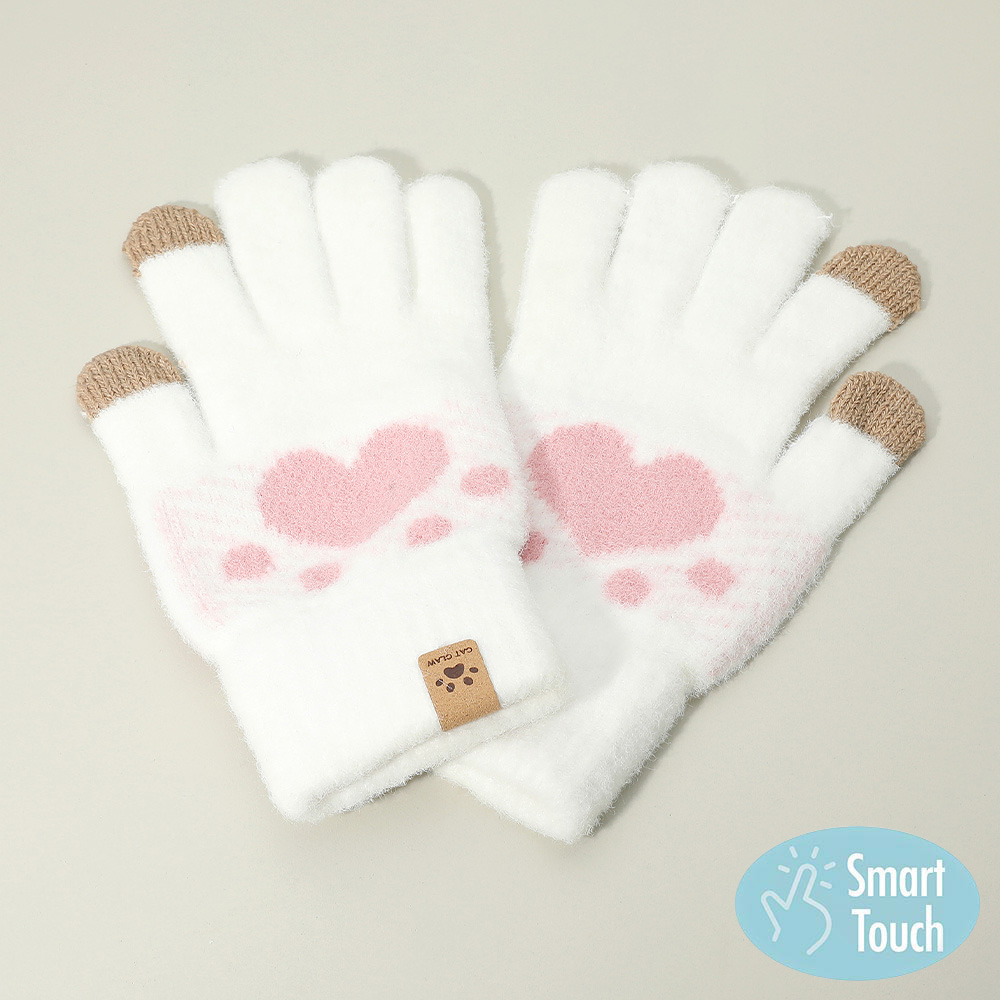 Details • Size : One Size • Material : 100% Polyester • Smart Touch • Stay warm and stylish with cat paw smart touch gloves featuring an adorable heart and paw print design. Made for comfort and functionality, these cozy gloves allow you to use your smartphone while keeping hands warm, making them perfect winter accessories for cat lovers and gift giving.