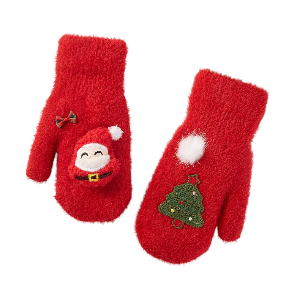 Details • Size : One Size • Material : 100% Polyester • Warm and festive Christmas mittens featuring embroidered Santa and tree designs with playful pom pom accents. Soft, cozy, and perfect for winter wear, holiday parties, or gifting to spread seasonal cheer.