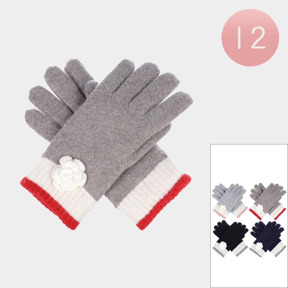 Details • Size : One Size • Material : 70% Acrylic, 30% Wool • Lining Material : 100% Nylon • Soft knit gloves featuring a delicate floral accent and contrast cuff design for a touch of charm and warmth. Perfect for keeping hands cozy during chilly days, these stylish gloves blend comfort with elegance, making them an ideal cold-weather accessory.