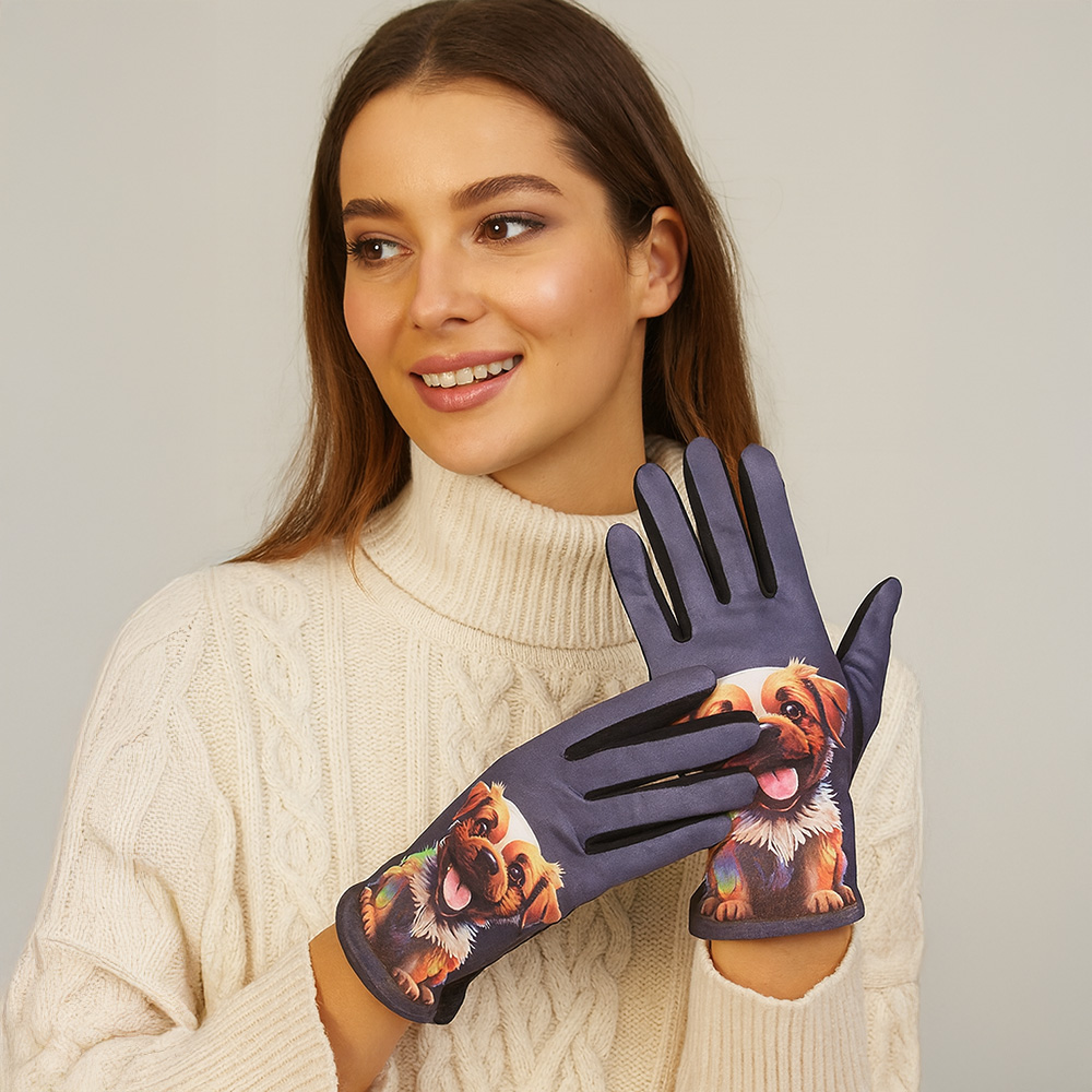 Details • Size : One Size • Material : 100% Polyester • Smart Touch • Add charm to your winter style with these smart touch gloves featuring an adorable puppy design. Combining warmth, comfort, and touchscreen compatibility, they make a fun and functional accessory for pet lovers on the go.